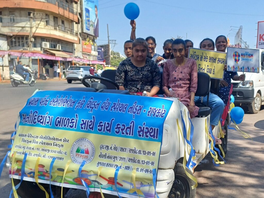 >>In 2017, C.M Vijay bhai Rupani had visited “PRAYAS” during the kite festival and after that we had the celebration of Holi and World Autism Day.